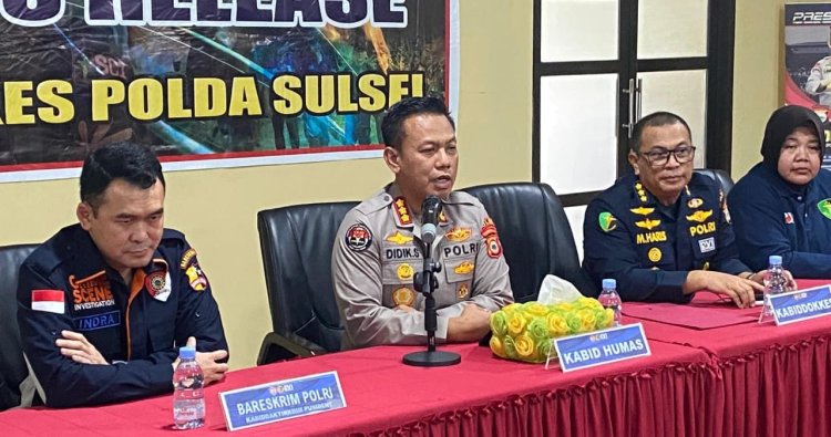 Konferensi Pers tersebut dipimpin langsung oleh Kabid Humas Polda Sulsel Kombes Pol. Didik Supranoto, S.I.K., M.H., didampingi Kabiddokkes Polda Sulsel, perwakilan Pusdokkes Polri selaku Kabid DVI, serta perwakilan Bareskrim Polri melalui Kabiddaktikkrim Pusident.